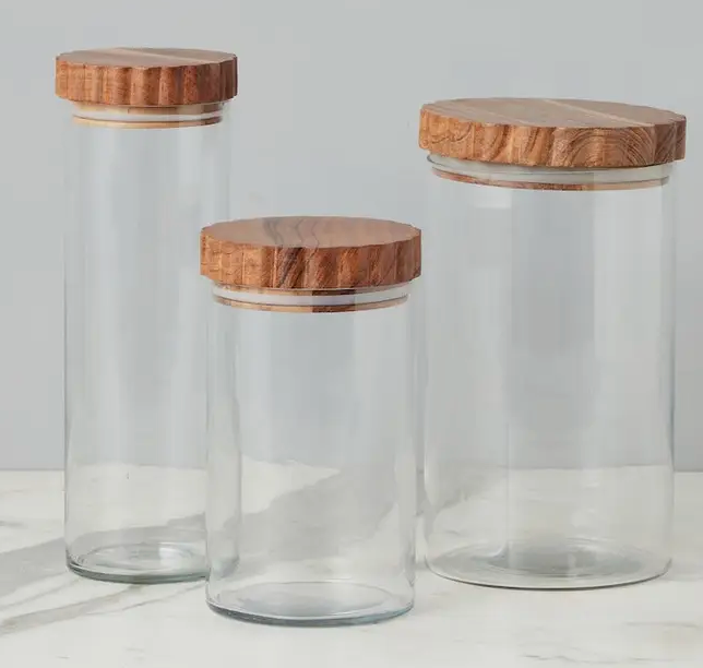 Glass Container W Scalloped Wood Top