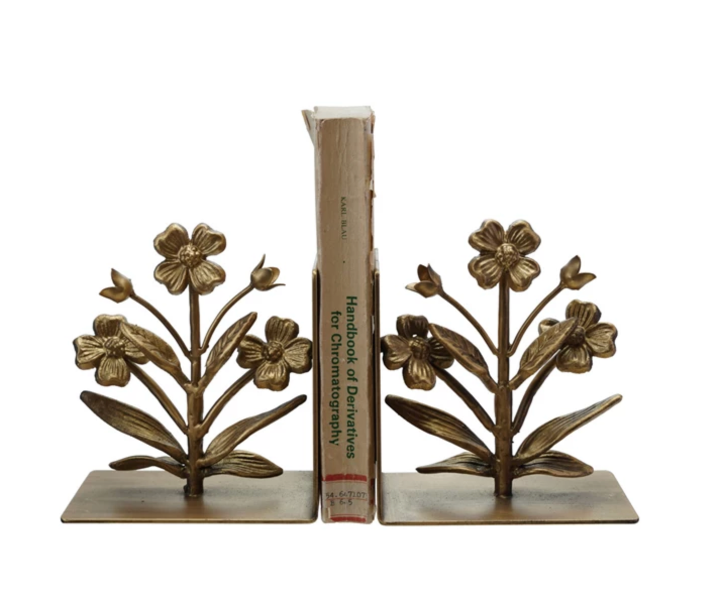 Cast Iron Flower Shaped Bookends Gold
