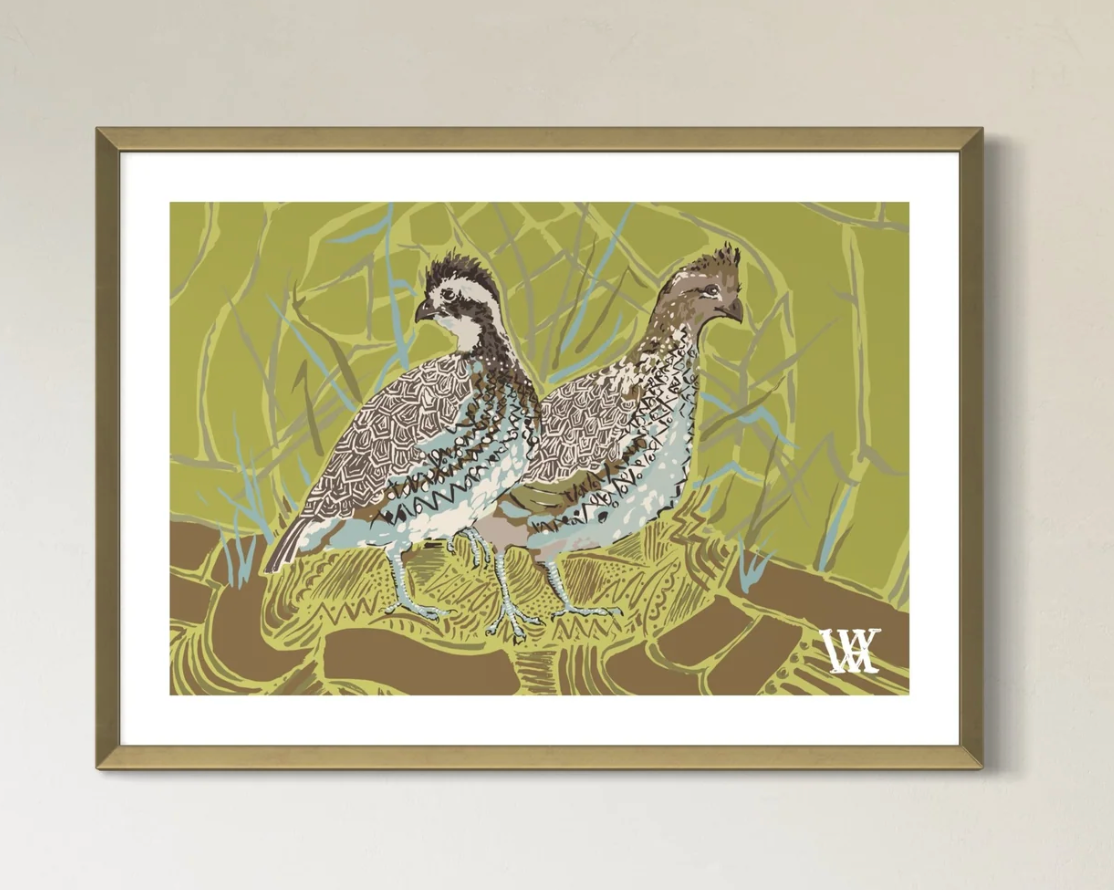 Bobwhite Pair With Espresso Frame 14" x 12"