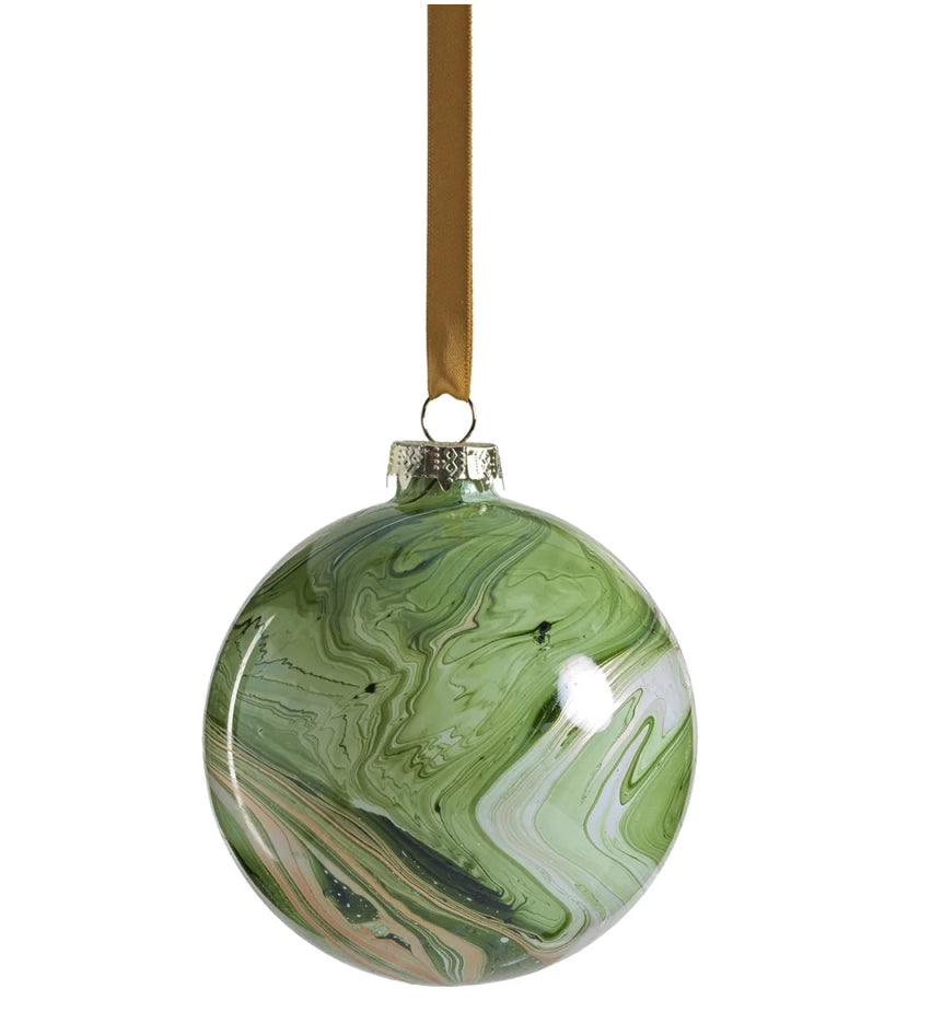 Solid Luster Watercolor Glass Ornament Green and Gold
