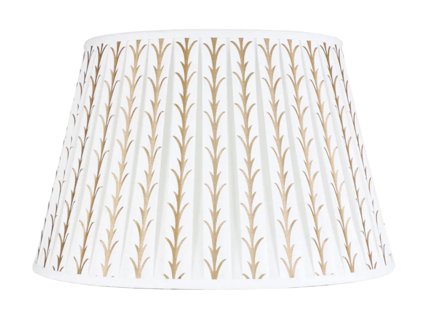 Pleated Acanthus Leaf Lamp Shade - Ivory/Gold 18”