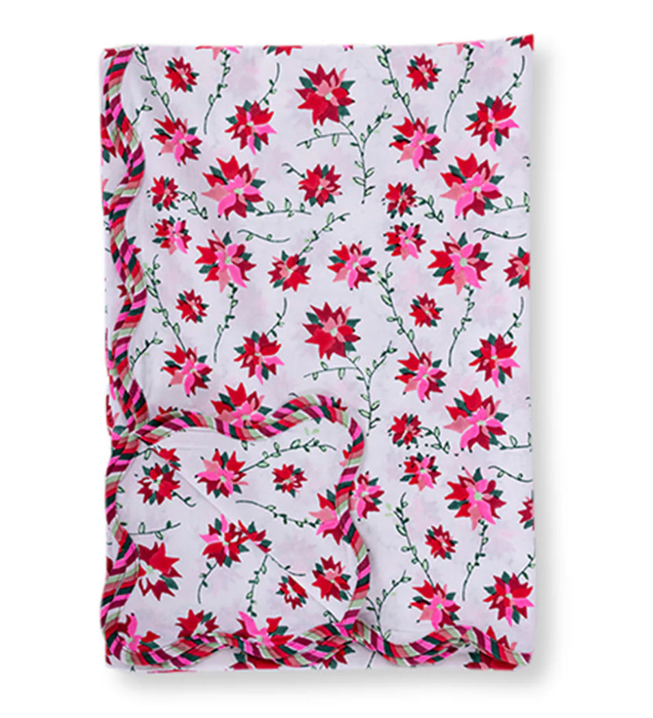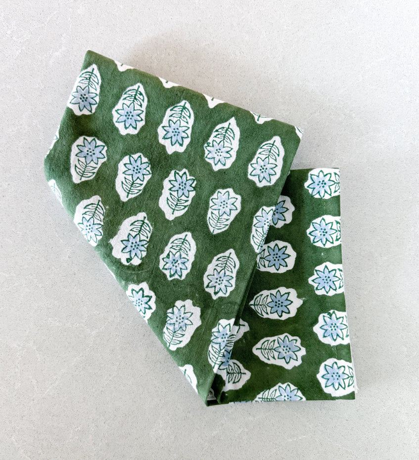 Poinsettia, Sage & Uniform Blue Tea Towel