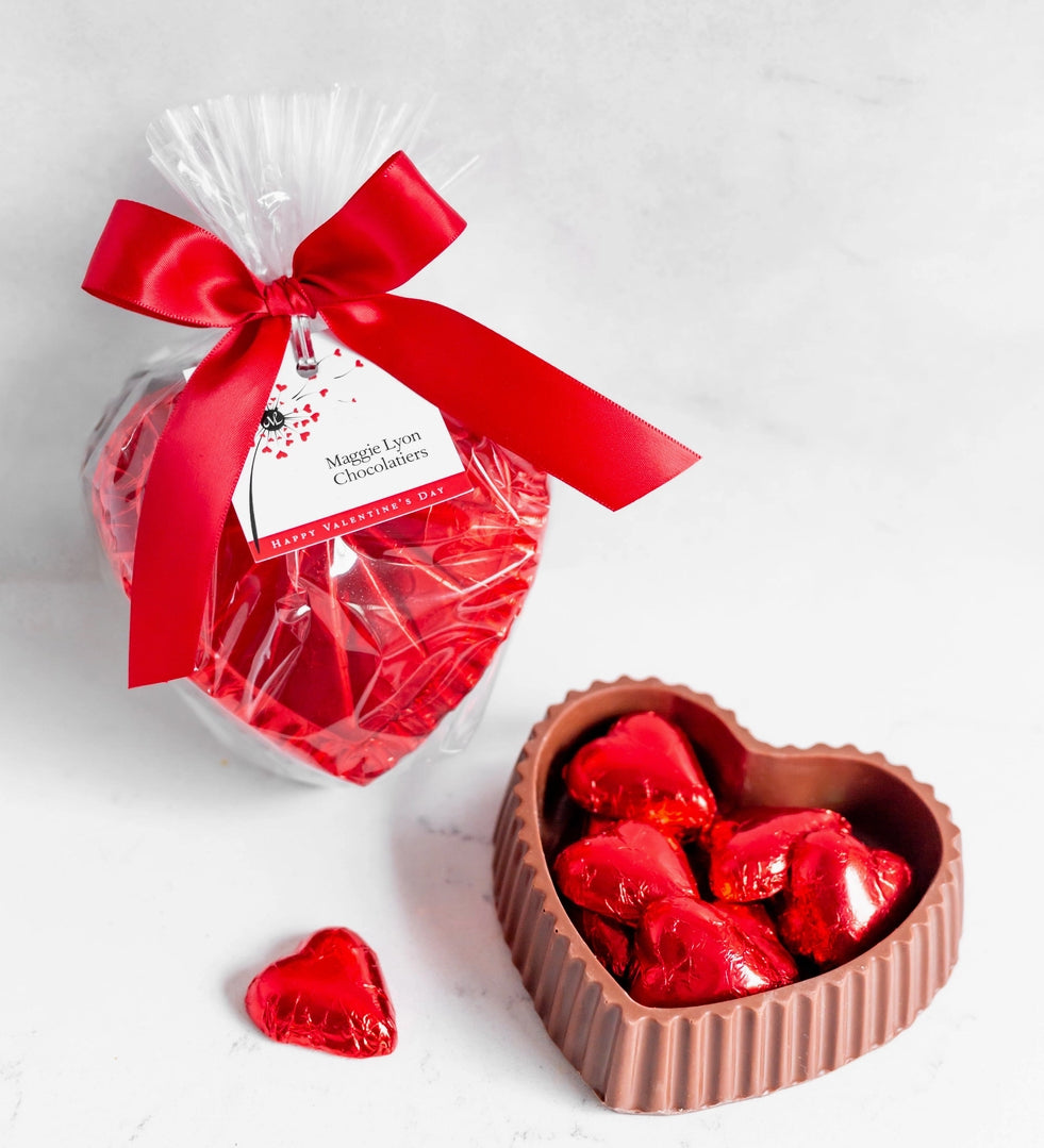 Solid Chocolate Heart Box W/Wrapped Hearts