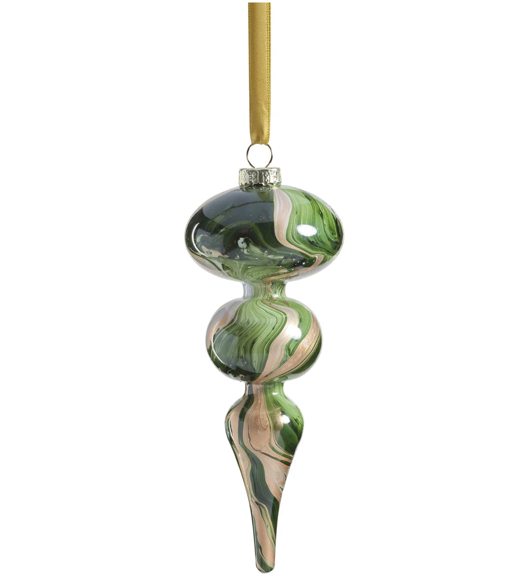 Solid Luster Watercolor Glass Ornament - Green and Gold - Finial