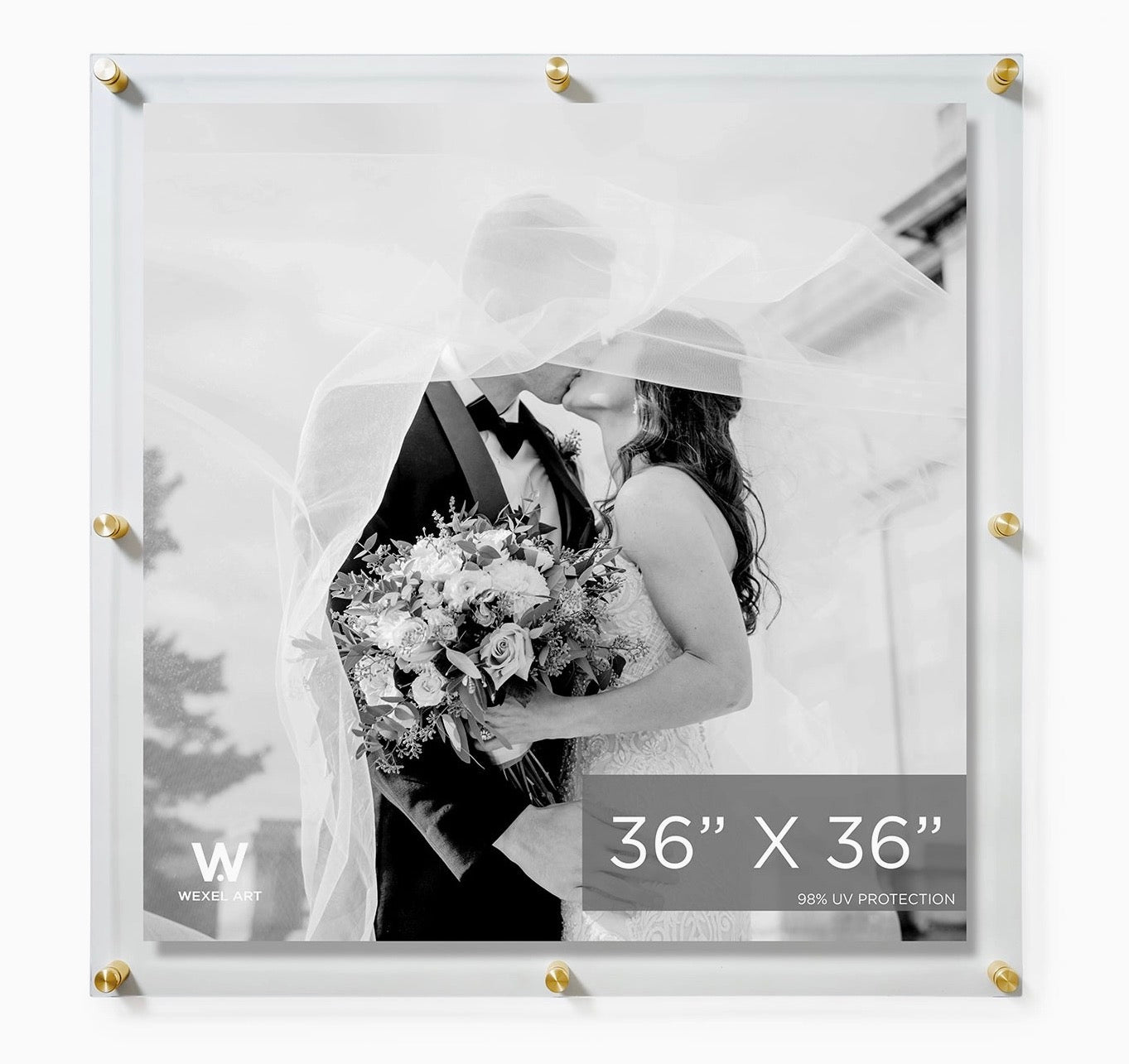 36 x 36” Modern UV-Grade Acrylic Floating Wall Frame/Gold