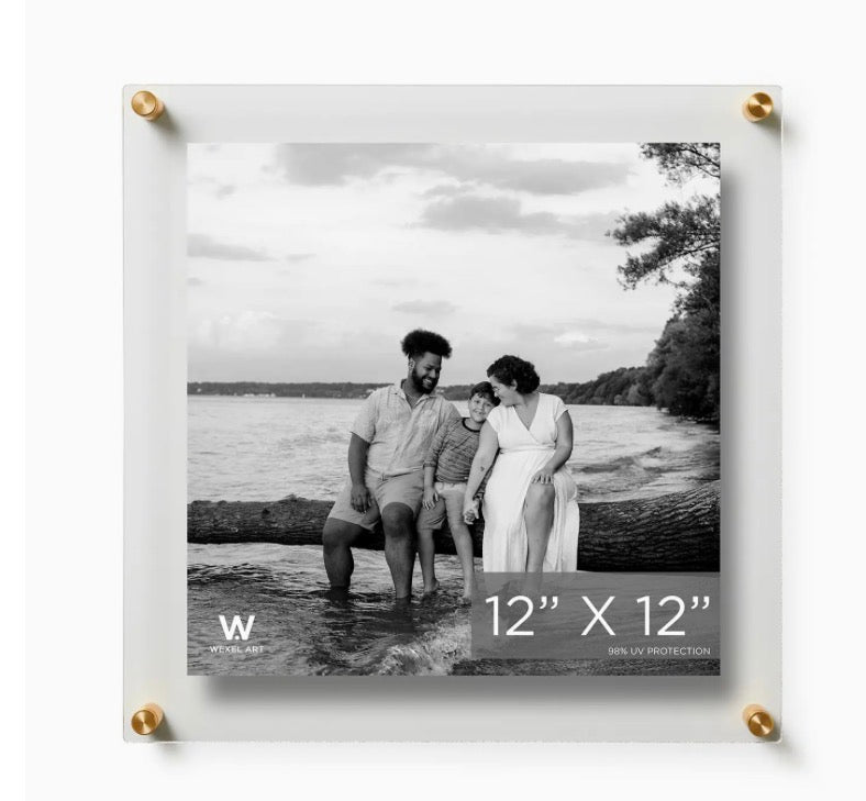 12 x 12” Modern UV-Grade Acrylic Floating wall Frame-Gold