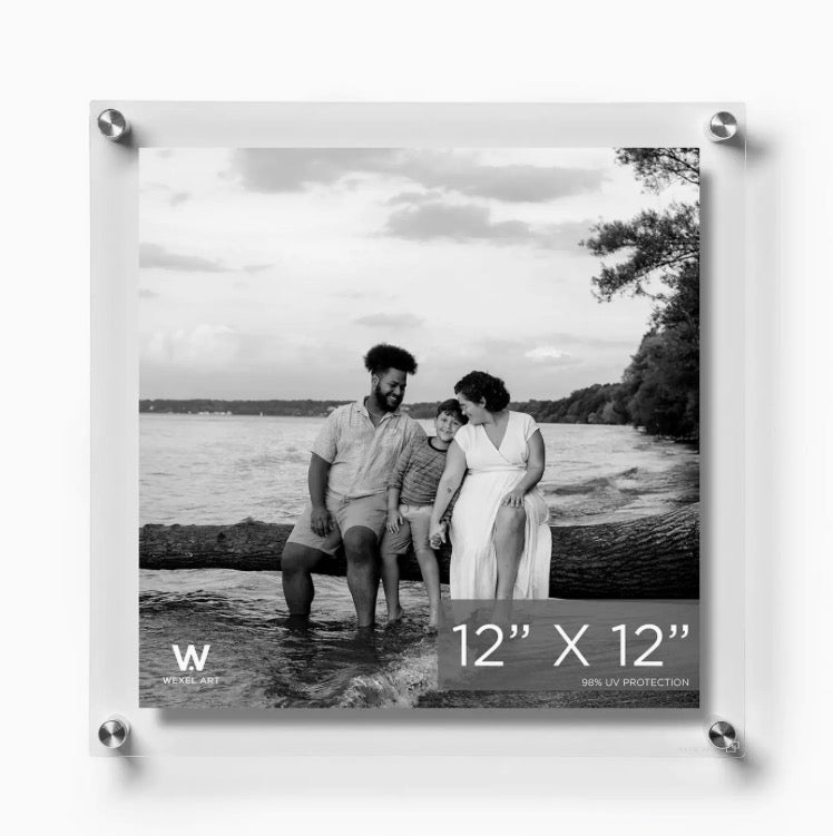 12 x 12” Modern UV-Grade Acrylic Floating Wall Frame - Silver