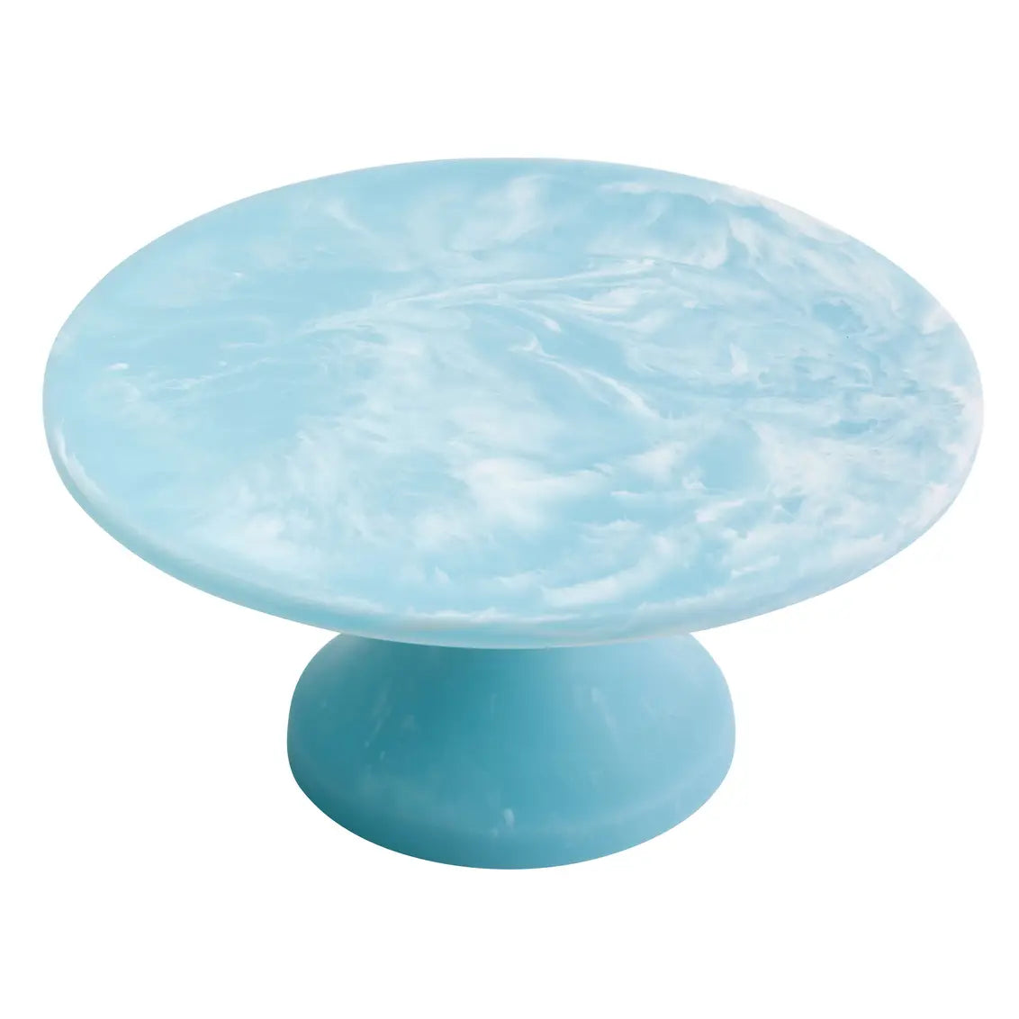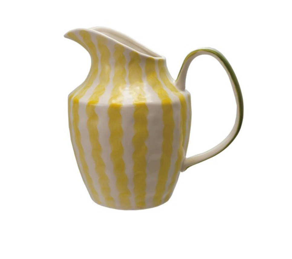 Stoneware Pedestal W/Stripes & Ruffled Edge
