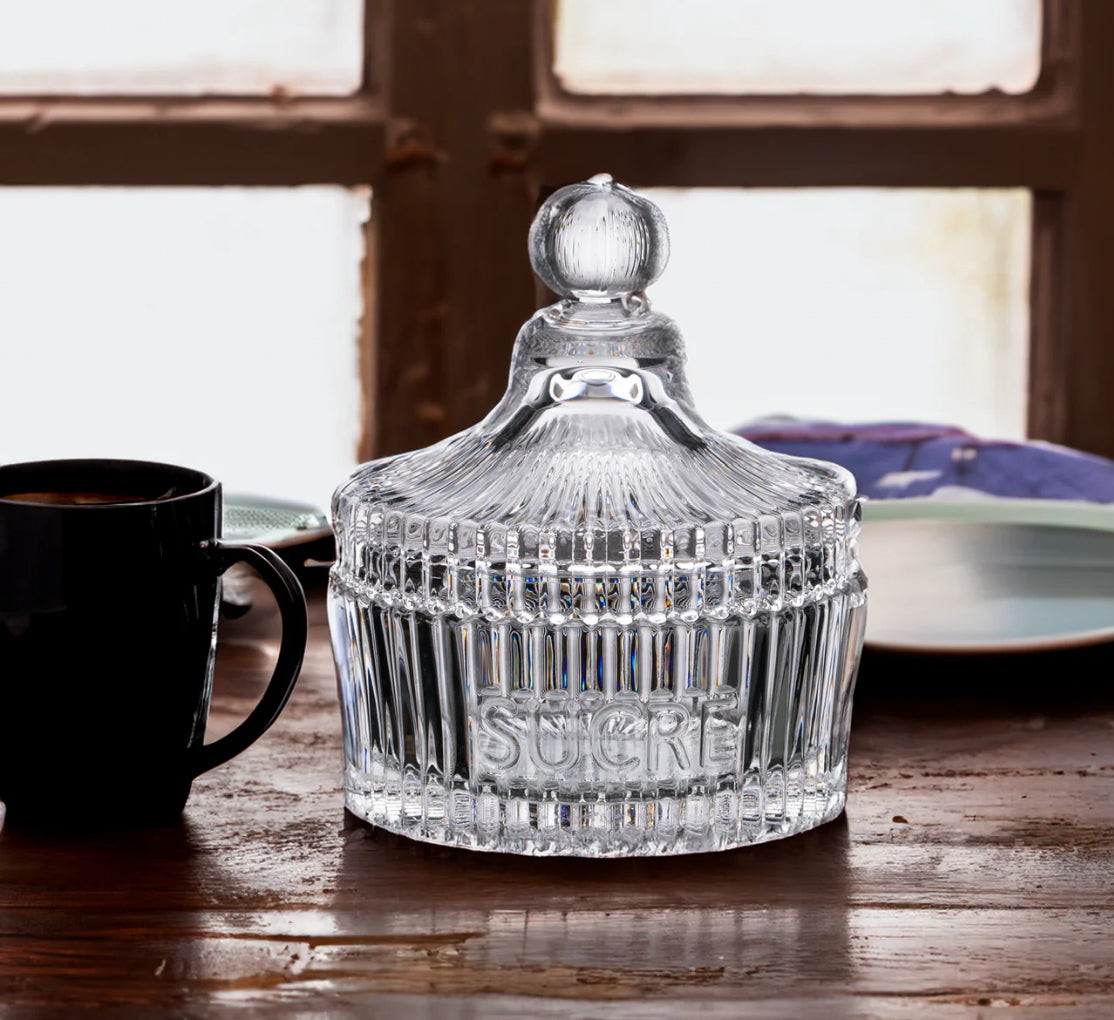 11.5 inch Line Etched Clear Glass Bowl on Pedestal