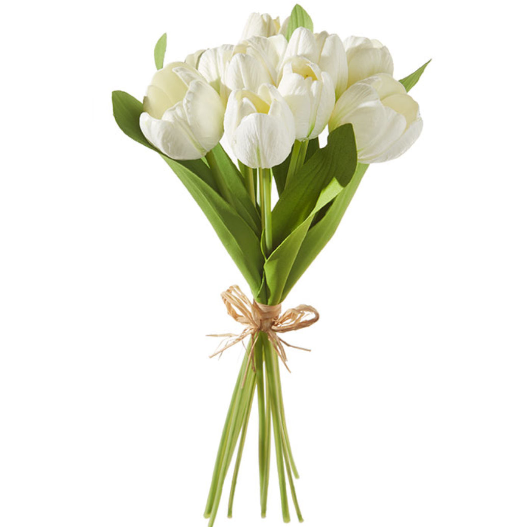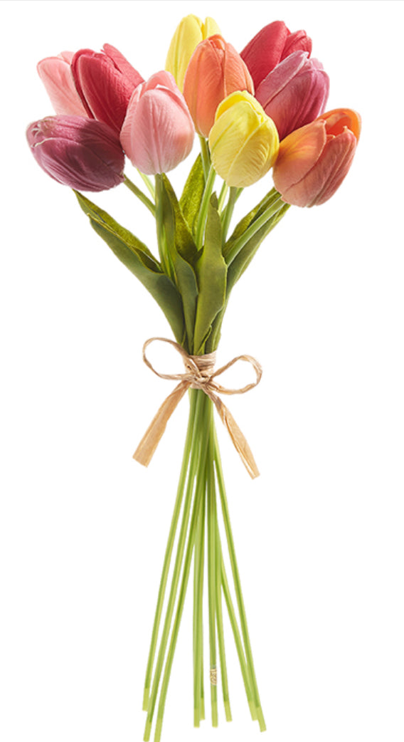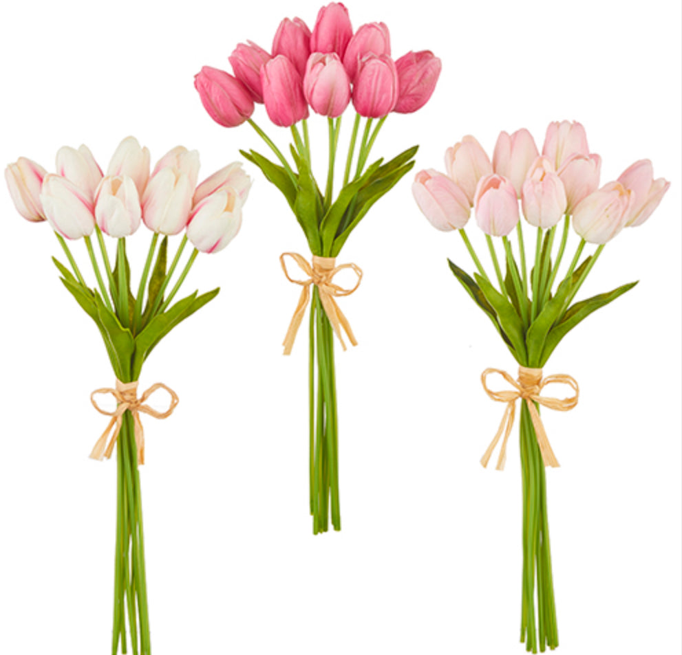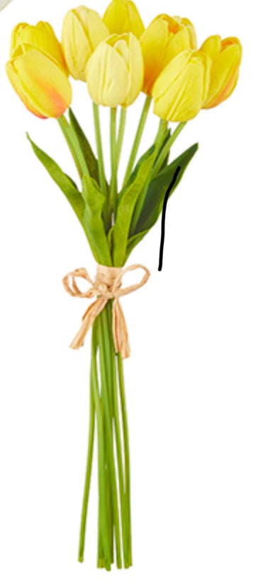Add a pop of color to your spring decor this year with these beautiful tulips! Each bundle features 9 real touch flowers tied together with twine.
