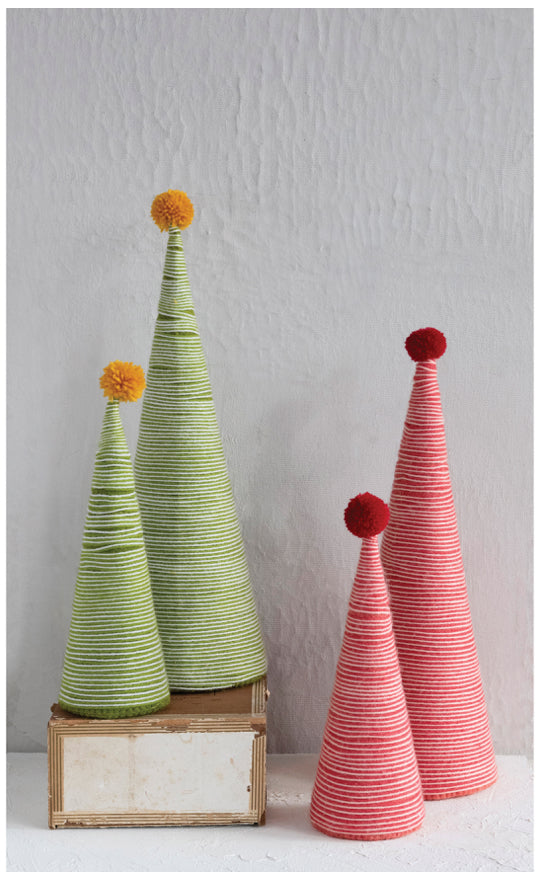 15"H Wool Yarn Wrapped Tree, Yellow Pom Pom, Green