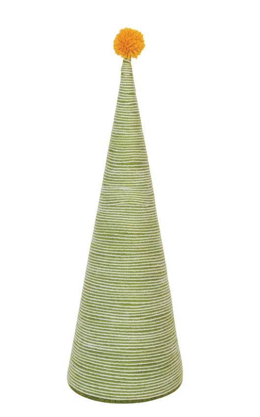 5" Round x 15"H Wool Yarn Wrapped Tree with Yellow Pom Pom, Green