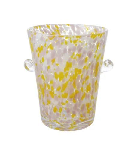2 Quart Hand Blown Confetti Glass Ice Bucket w Handles