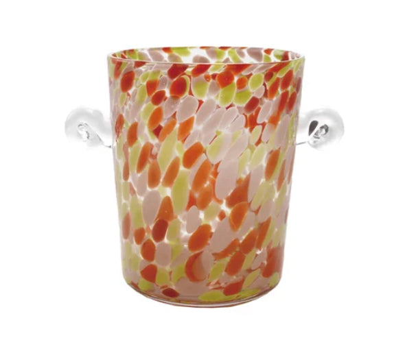 2 Quart Hand Blown Confetti Glass Ice bucket with handles