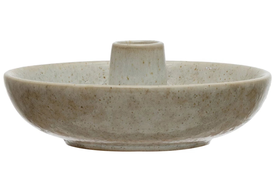 5" Round x 1-3/4"H Stoneware Dish w/ Toothpick Holder, Reactive Glaze, White (Each One Will Vary)