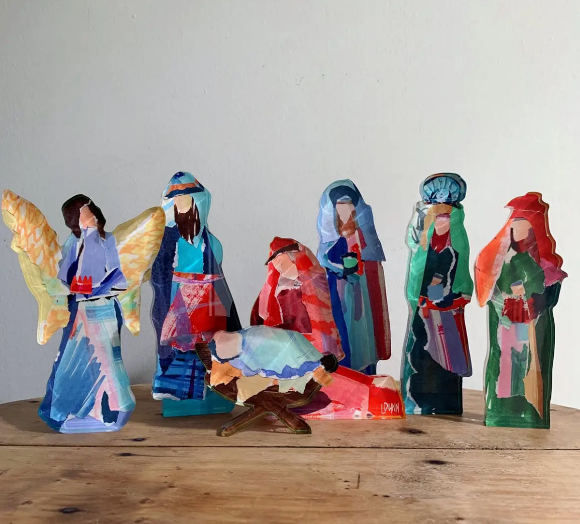 This unique acrylic nativity set is Lauren’s creative representation of the birth of Jesus. It includes 7 figures, Mary, Joseph, baby Jesus, the 3 wise men, and the angel. -Large Set- tallest figure is approximately 8 inches in height and all figures are made out of 3/4 inch thick free-standing acrylic. -Small Set-tallest figure is approximately 3 inches in height and all figures are made out of 1/2 inch thick free-standing acrylic. *Proudly made in the USA.