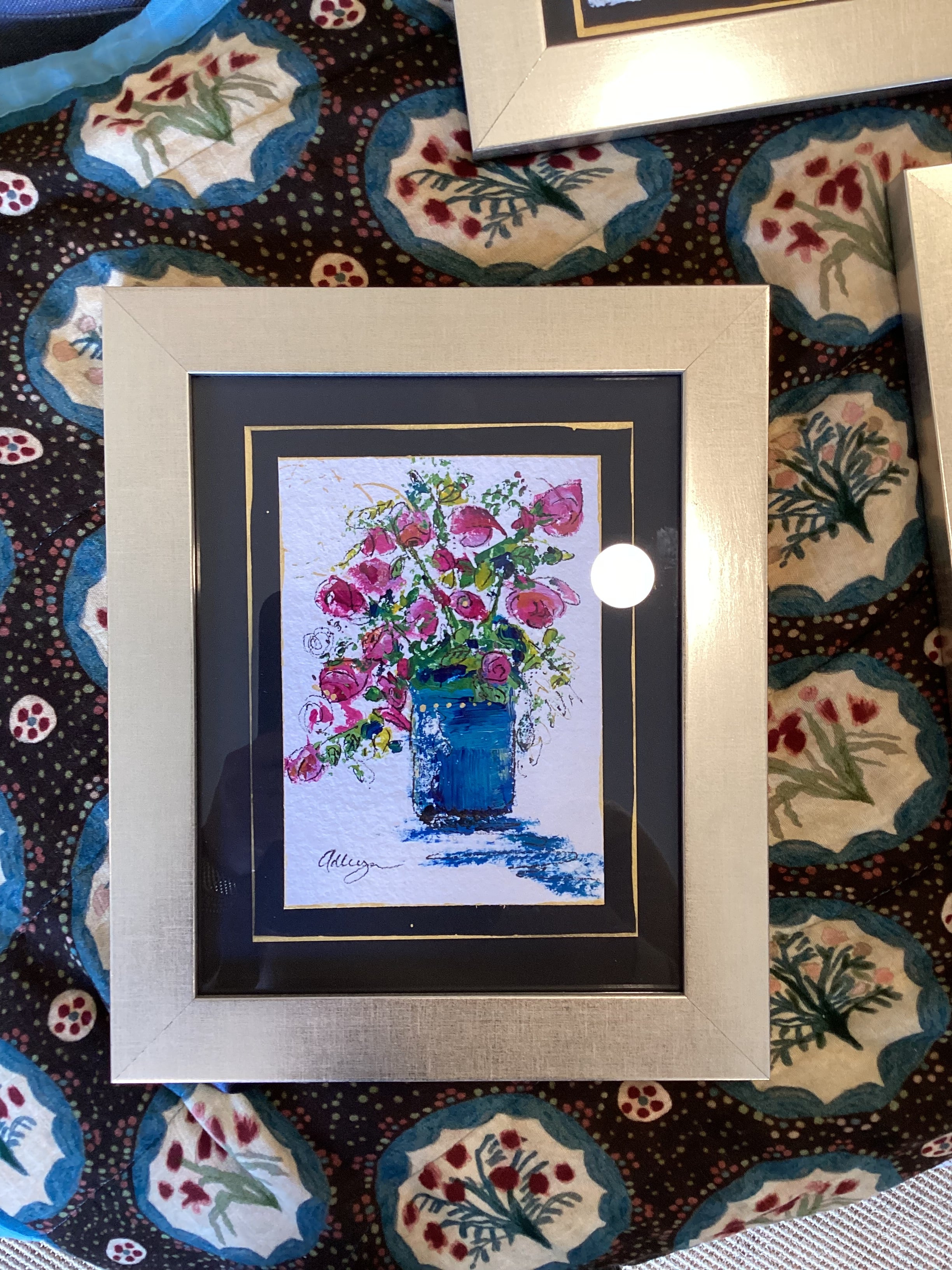 Adelyn Scott 12x10 Pink Flowers Blue Vase