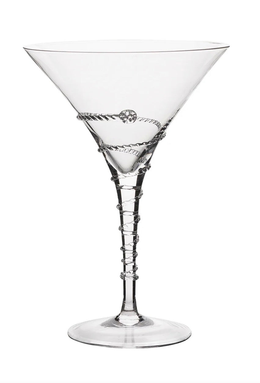 From our Amalia Collection - Our svelte, threaded swirl ascends our Amalia martini glass adding a seductive twist to your ice cold cocktail.