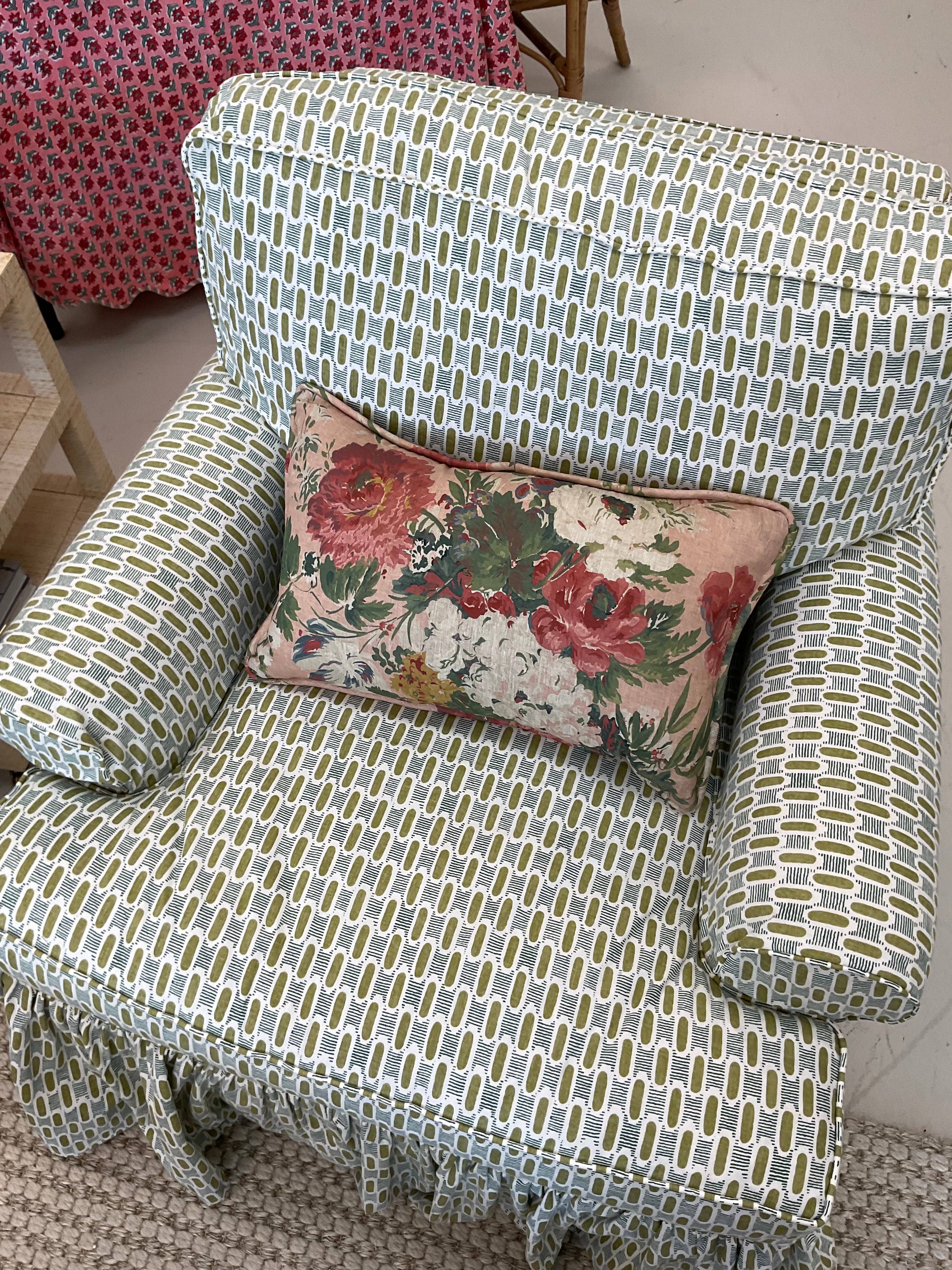 Custom made Anna French lumbar pillow in Garden Club Blush.