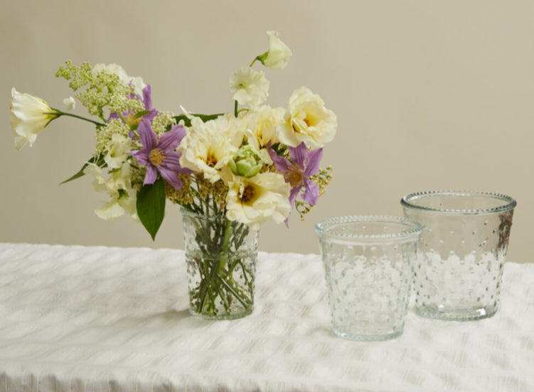 The perfect accent for your fresh flowers. Glass material, 4 x 5 in size.