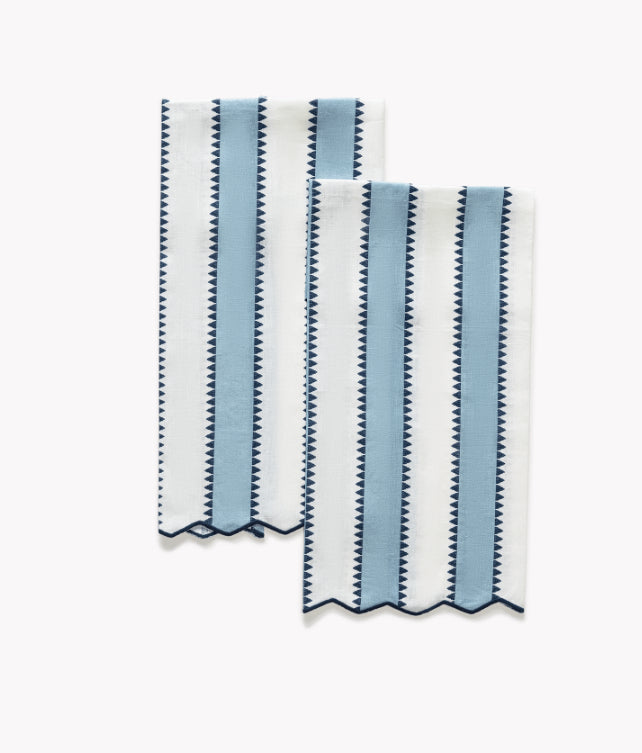 Inspired by antique textiles, Schumacher's Apollo Stripe is a bold, expressive choice. Made in our signature linen in beautiful sky blue, this guest towel embodies a laid-back Mediterranean ease that's effortlessly cool.