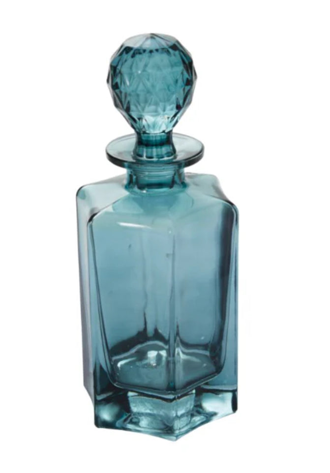 Blue glass decanter. 4.25”x3.5”x10.25