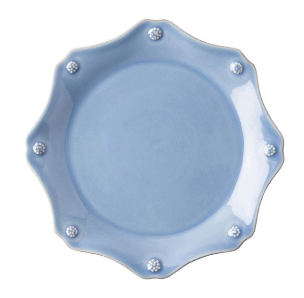 Rimmed with a simple thread and adorned with a sprinkling of berries, this iconic dinnerware collection embraces historic motifs in a sublime blue hue. Mix and match this sweetly scalloped dessert/salad plate with so many of our collections.