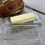 Glass Butter Dish based on a traditional design and cast in crystal clear glass. With a timeless appeal we just love, it is classically simple and will keep you slab of butter ready to spread. Dishwasher safe.