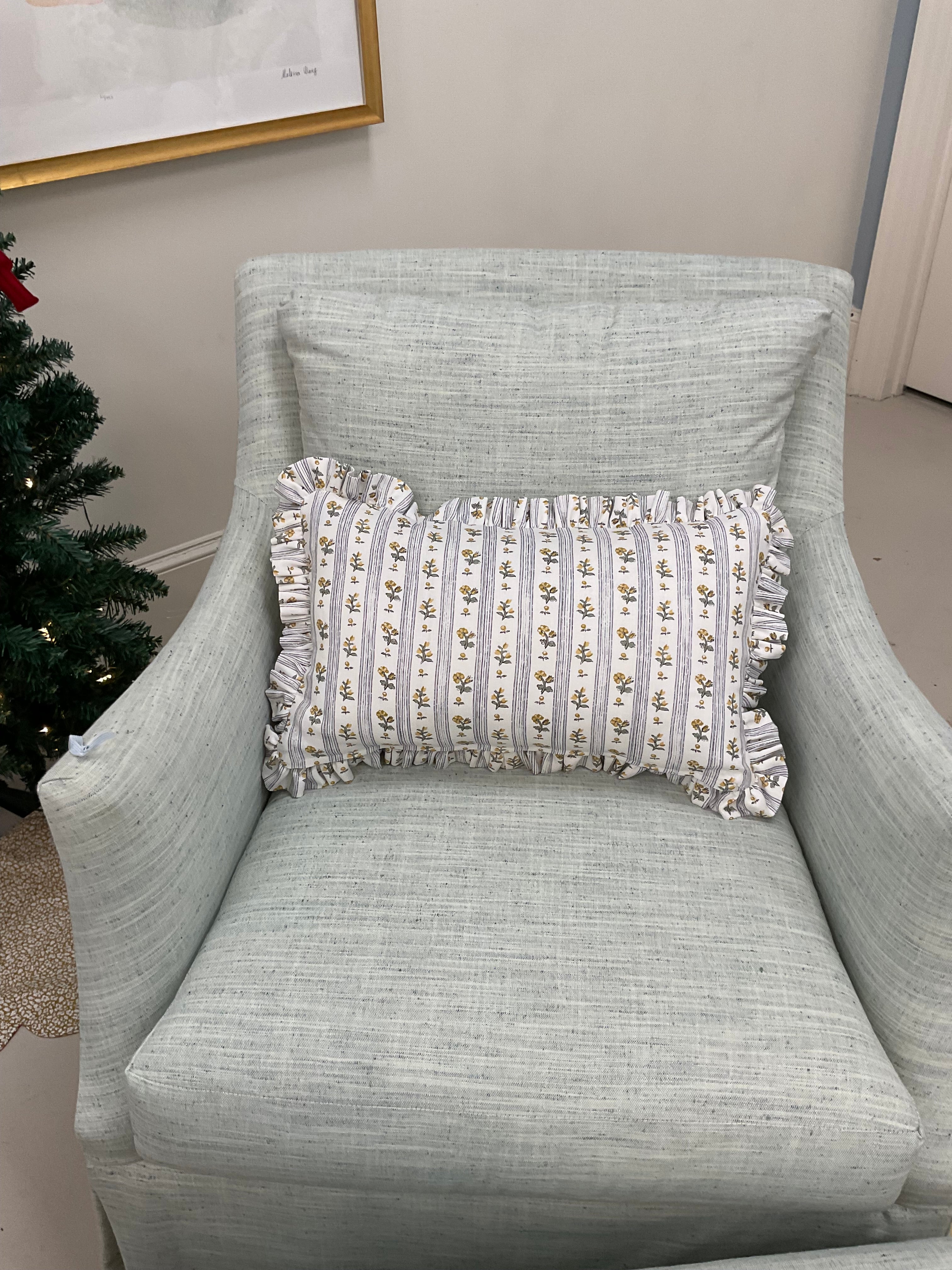 Custom made Schumacher Cabanon Stripe Lumbar Pillow 14” by 22”.