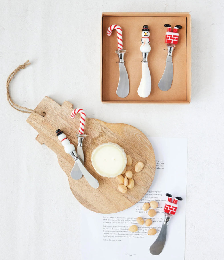 6-3/4"L Stainless Steel Canape Knives w/ Glass Holiday Icon Handle, Red & White, Boxed Set of 3