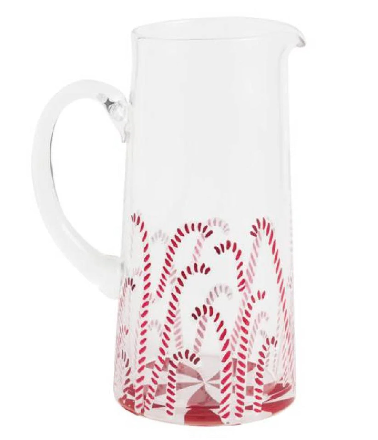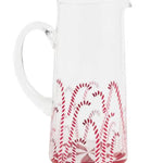 This charming Candy Cane Glass Pitcher is a delightful addition to your holiday gatherings and festive celebrations. Crafted from high-quality glass, it boasts a generous 64 oz capacity, perfect for serving your favorite beverages to family and friends. The pitcher is beautifully designed with a peppermint base that adds a whimsical touch, while the hand-painted candy canes bring a splash of holiday cheer to your table setting. Its sturdy handle ensures easy pouring, making it both functional and decorative. Whether you're serving refreshing iced tea, lemonade, or festive punch, this pitcher is sure to be a conversation starter and a cherished part of your seasonal decor. Ideal for holiday parties, family dinners, or as a thoughtful gift for loved ones, this Candy Cane Glass Pitcher combines practicality with festive flair, making it a must-have for the holiday season.