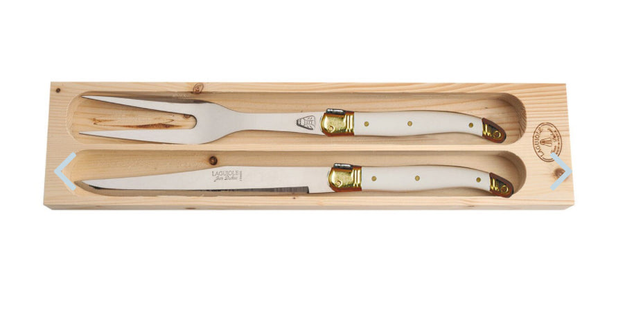 World renowned knives from the Midi-Pyrenees region of France. These stainless steel knives feature the iconic bee with natural wood, stainless steel or festively colored handles. This line is a lively addition to any dining experience.