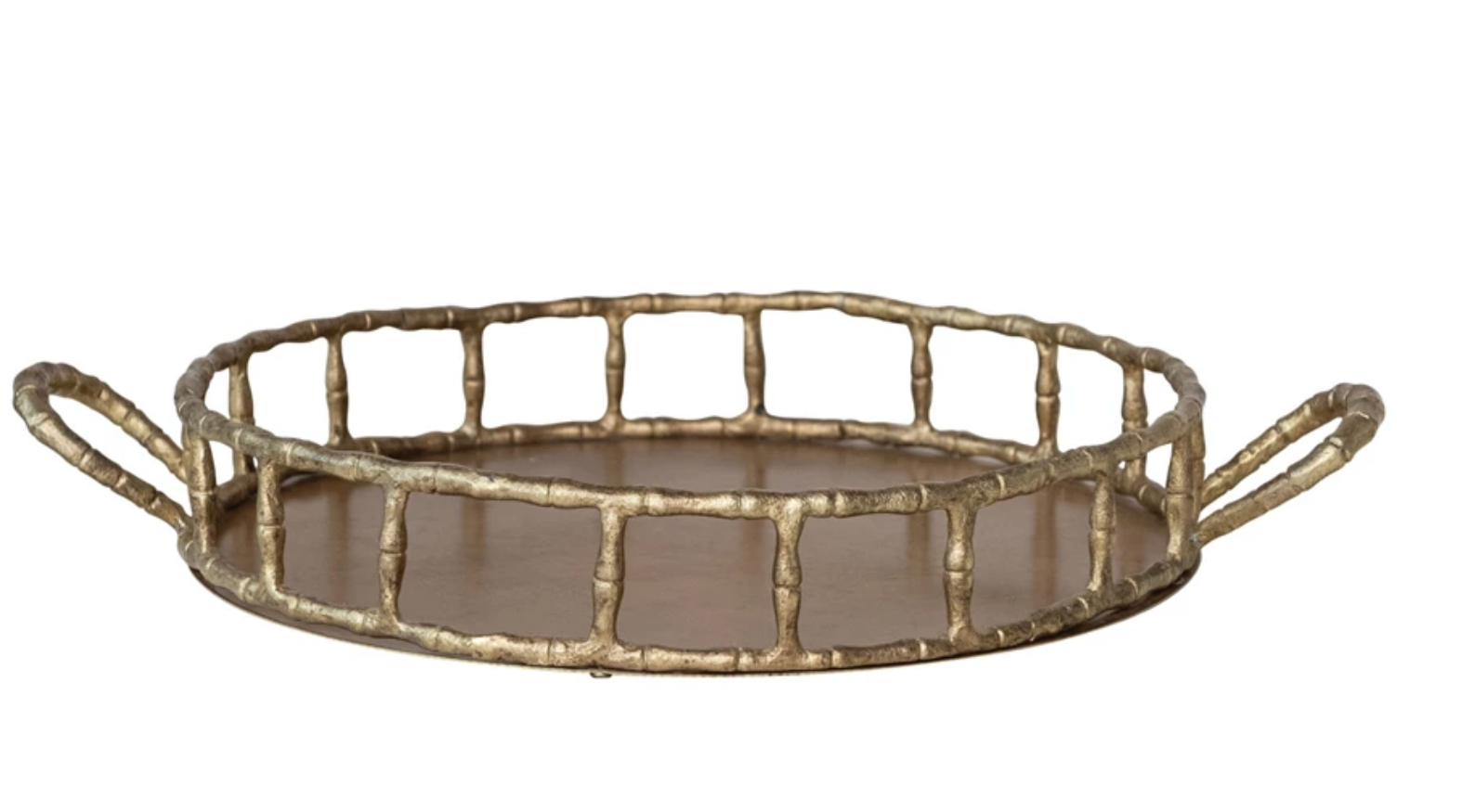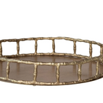 21"L x 15-1/4"W x 2-3/4"H Cast Aluminum Faux Bamboo Tray w/ Handles, Brass Finish