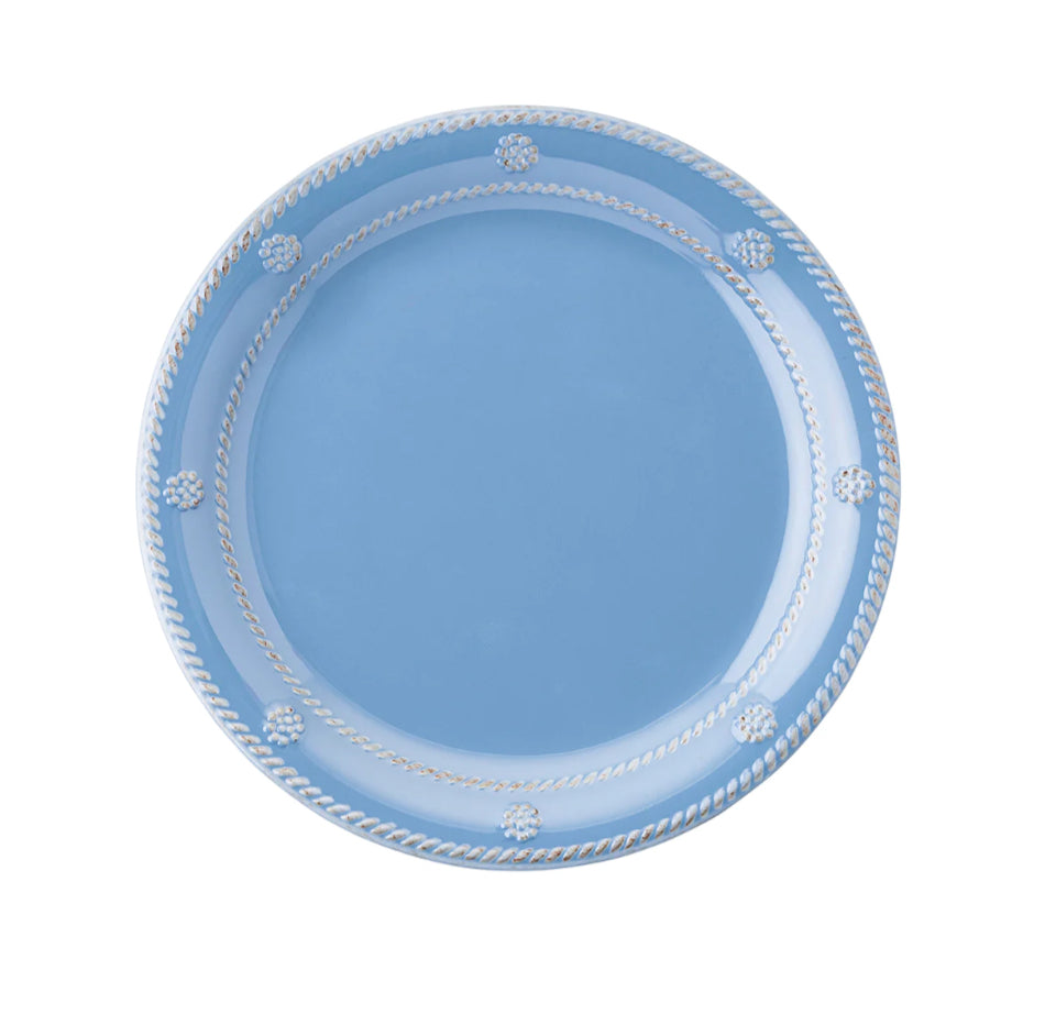Our new melamine dinnerware was made with the adventurous entertainer in mind. Durability meets design with our iconic Berry & Thread motif in a chic chambray blue, allowing you to seamlessly entertain indoors and out.