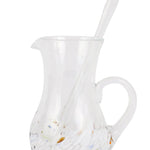 Dynamic streaks of color adorn the mouthblown Chiara White Pitcher and Stirrer Set. A useful entertaining piece, the ribbons of color bring interest and irresistibly Italian style to your entertaining.