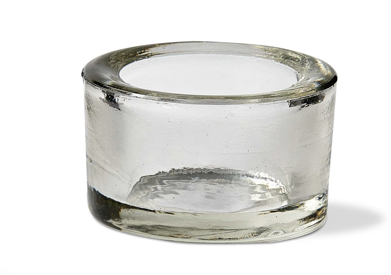 Bring a touch of timeless elegance to your home with the chunky tealight holder! hand-crafted by artisans using traditional blown glass techniques, this clear glass holder adds a touch of warmth and beauty to your space.