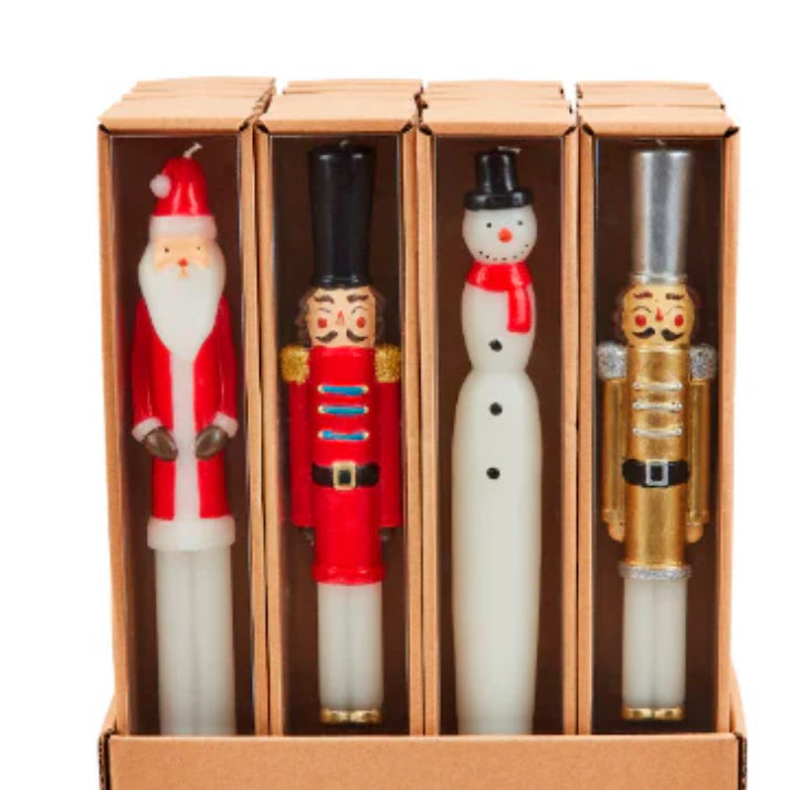 Add charm to your holiday décor with our Christmas Figural Tapers. Featuring festive shapes like Santas and trees, these hand-painted candles bring warmth and whimsy to any space. Decorative and functional, they’re perfect for mantels, tables, or gifting.
