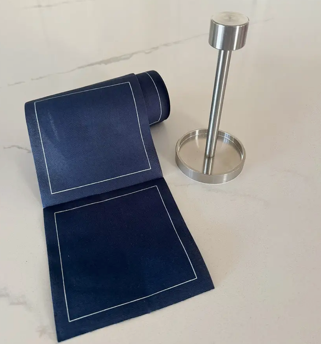 Cocktail Napkin Stand elevates the look of any bar. Make it easy to tear off a napkin for your next drink. Custom created (or and patent pending) to store and display Toasting with Tara’s cocktail napkin rolls. Surprise and delight your family and guests with this upscale bar accessory. * COCKTAIL NAPKIN ROLL NOT INCLUDED. Purchase them Here! * Less than 6 in. tall and 3 in. wide * Wipe clean with a soft damp cloth