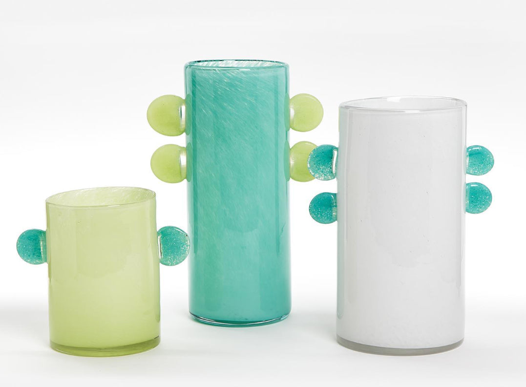 Elevate your living space with the mesmerizing charm of this hand-blown glass vase. These glass artisan vases boast colored accents that add a pop of vibrancy to a Murano glass style base color.. Each piece is a unique masterpiece, ensuring no two are alike. Perfect for holding fresh blooms or simply as a standalone decorative piece, this vase exudes elegance and sophistication.