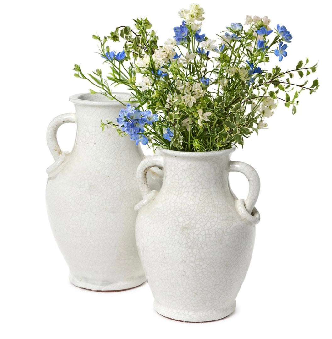 Elevate your space with the artisanal charm of the A Mano Ceramics 2 Handled Urn in Crackle Ivory Glaze. Imagine them adorning a mantel or gracing a console table, adding a touch of old-world sophistication. The crackle ivory glaze adds a timeless appeal, making this urn a standout accent piece.