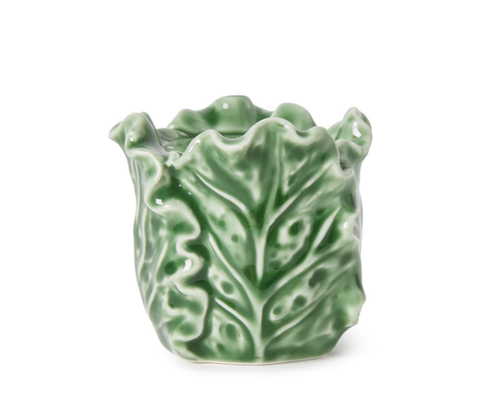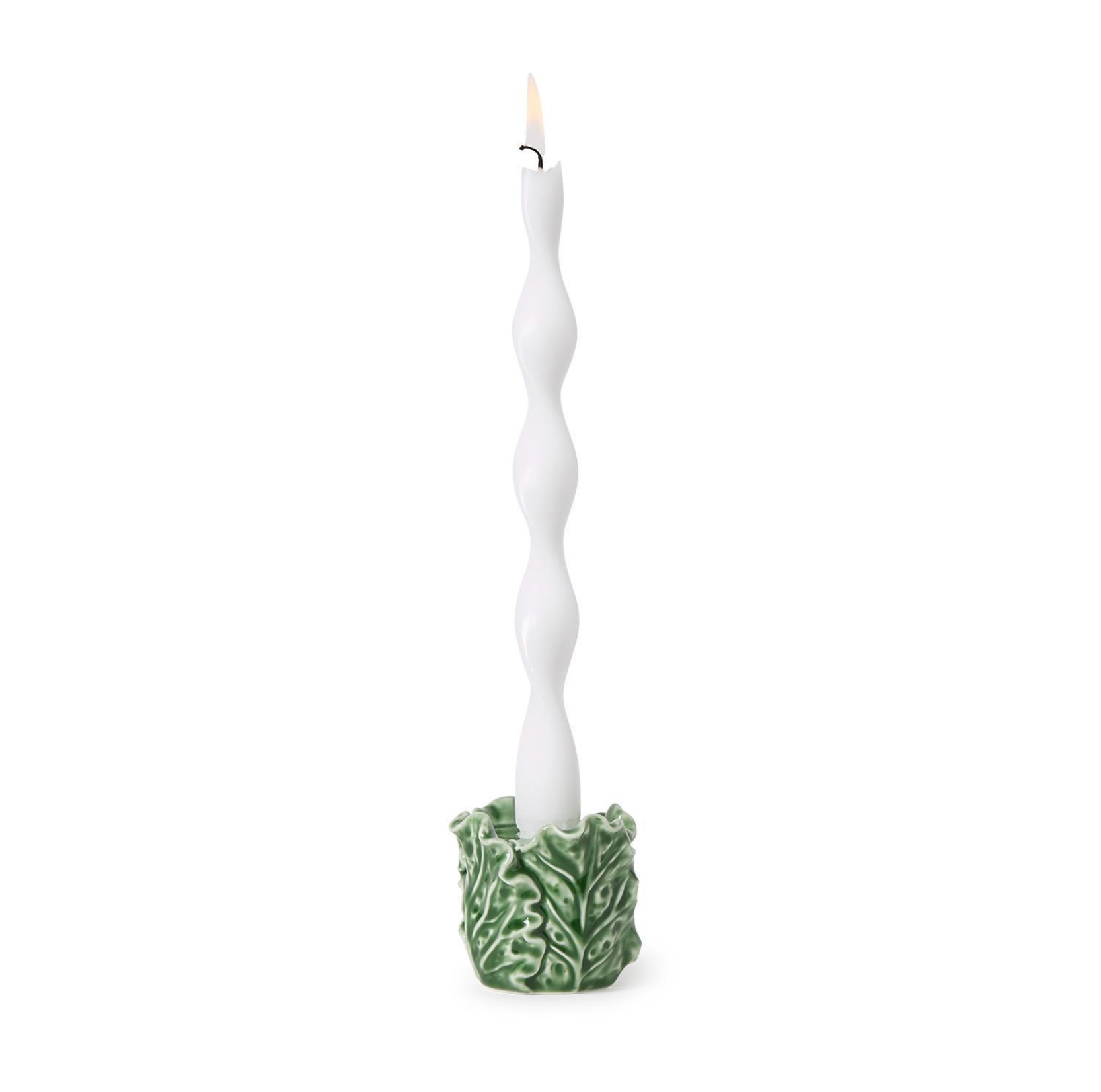Elevate your table setting with the cruciferous leaf taper candlestick candleholders. Crafted from sturdy stoneware, each piece features a textured leaf design that brings a natural, organic elegance to any space. Perfect for creating a warm, inviting glow at dinners, gatherings, or seasonal displays.