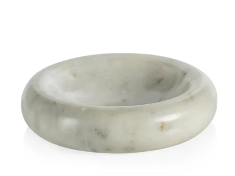 Elevate the sophistication of your home decor with this stunning Curved Round Marble Bowl. Constructed from high-quality marble in a classic white color, this bowl showcases a curved design that complements any decor style. It's the ideal size for holding various items or as a decorative centerpiece. The natural patterns and variations in the marble make each piece unique.