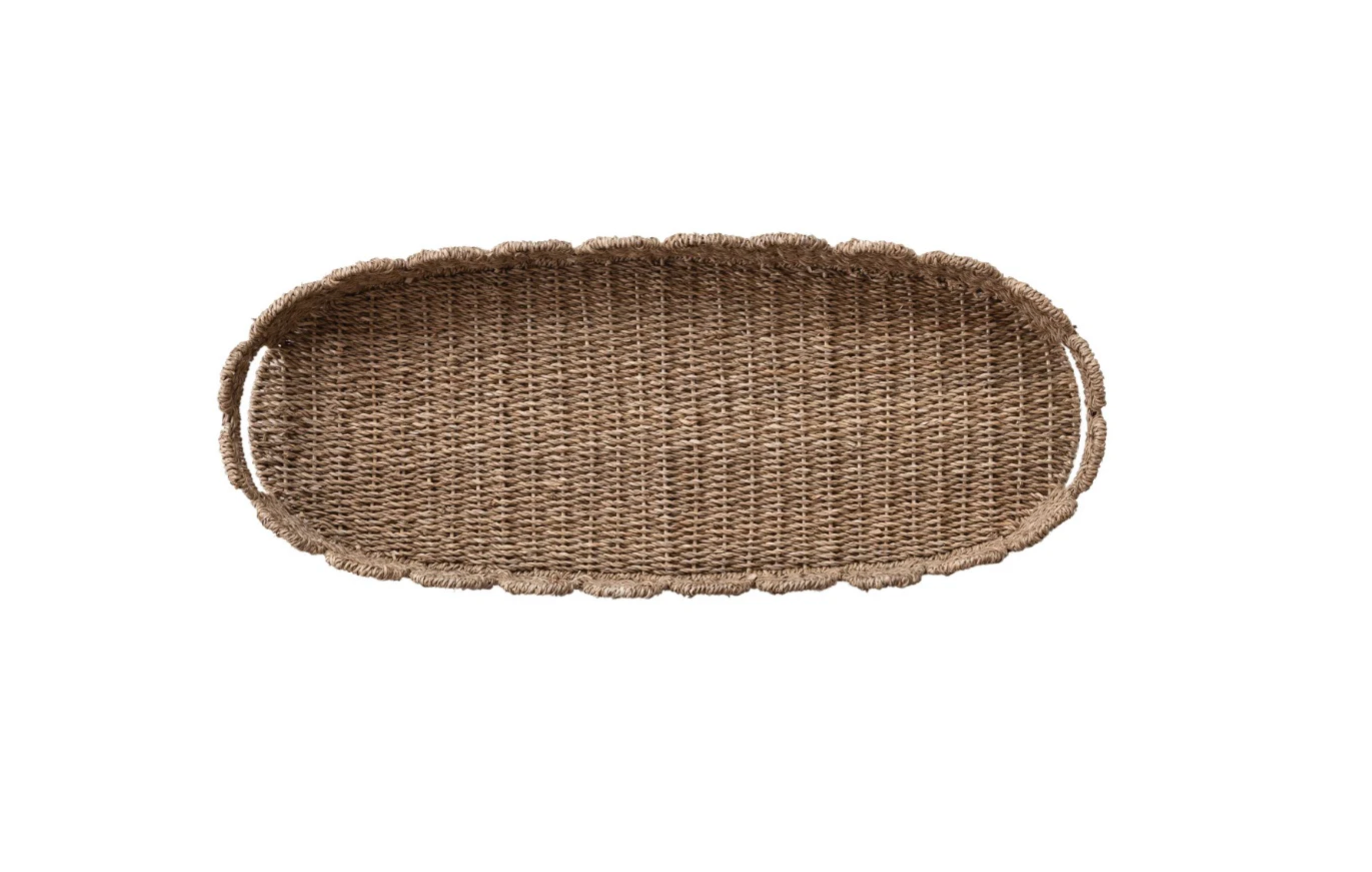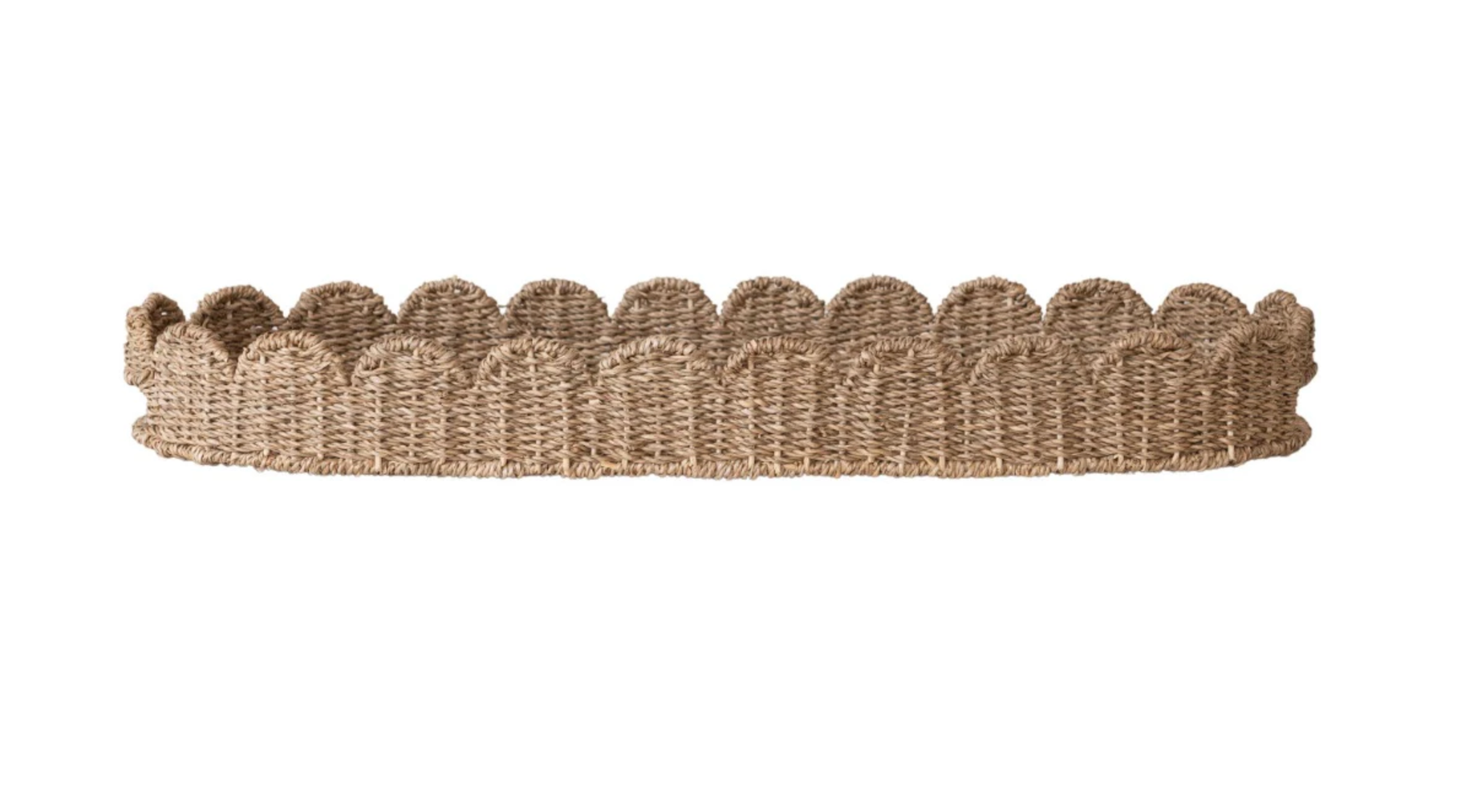 Decorative Hand-Woven Bankuan Scalloped Tray w/ Handles, Natural