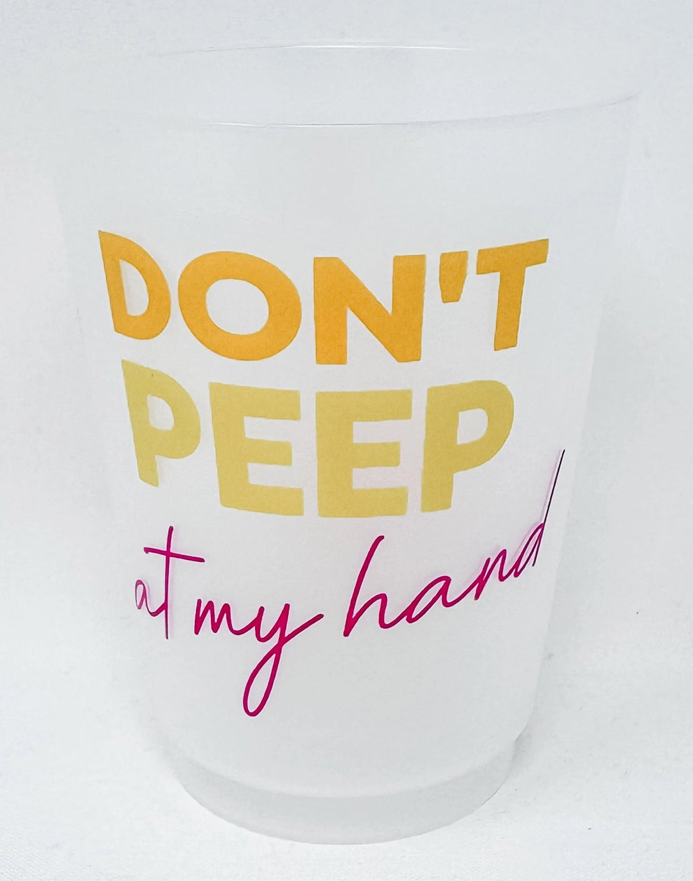 Sip in style with our Don't Peep Cups! Perfect for your next mahjong night or any fun gathering, these cups add a playful twist to your favorite beverages. Featuring vibrant "Don't Peep" designs that celebrate your love for the game, each frosted cup is sturdy, reusable, and ready to party! Whether you're serving up iced tea, cocktails, or a refreshing lemonade, these cups will keep the good vibes rolling all night long. Cheers to the game we love—one sip at a time! Comes in a sleeve of 10.