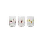 3" Round x 4-1/4"H 10 oz. Drinking Glass w/ Embedded Fruit, Multi Color, 3 Styles, Dishwasher Safe, Do Not Microwave