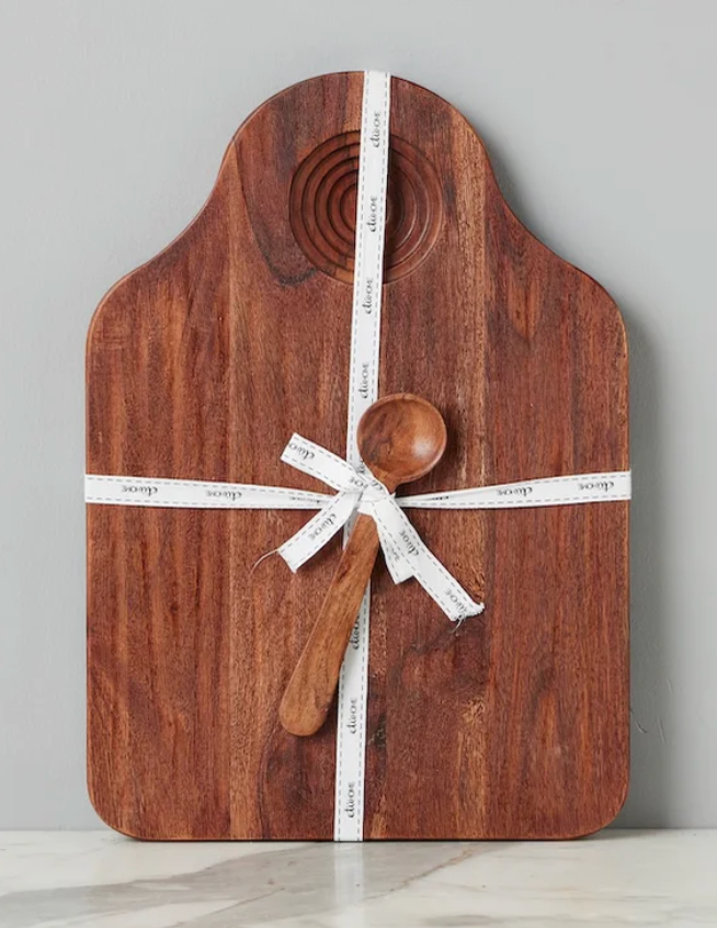 Serve bread and dips in style with the Dutch Dipping Board. Featuring an arched silhouette and a signature circular well, this piece is perfect for pairing olive oil, balsamic, or spreads with baguette slices or crudités. Crafted from richly grained acacia wood, it brings both beauty and versatility to your kitchen or entertaining spread.