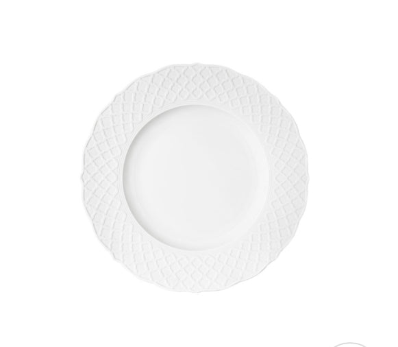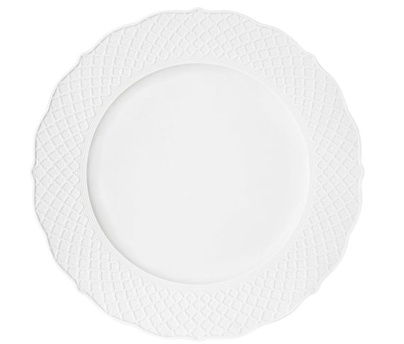 Inspired by 18th Century botanical illustrators, Hungarian designer Anna Weatherley creates hand-painted porcelain pieces to adorn the home, from dinnerware to stunning tablescapes. The Empire White Dinner adds a touch of elegance to any setting. Boasting a delicately waved rim, this plate is made to serve and entertain in style.