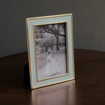 Impeccable design in Slate. The Encanto Jason Frame 4 x 6 combines a trim rectangular profile, glossy enamel rimmed in gold, and timeless proportions that enhance any photograph.