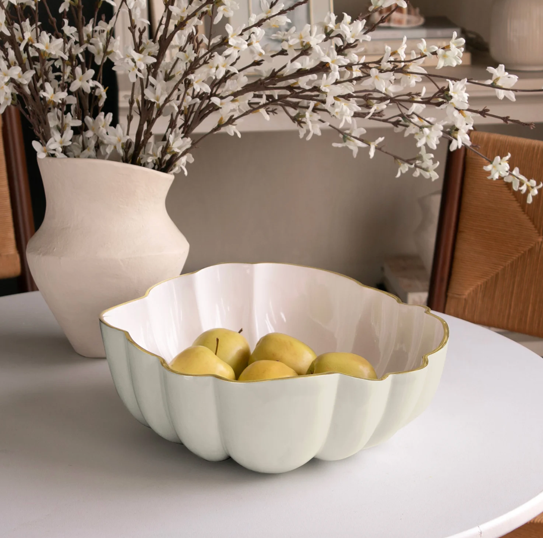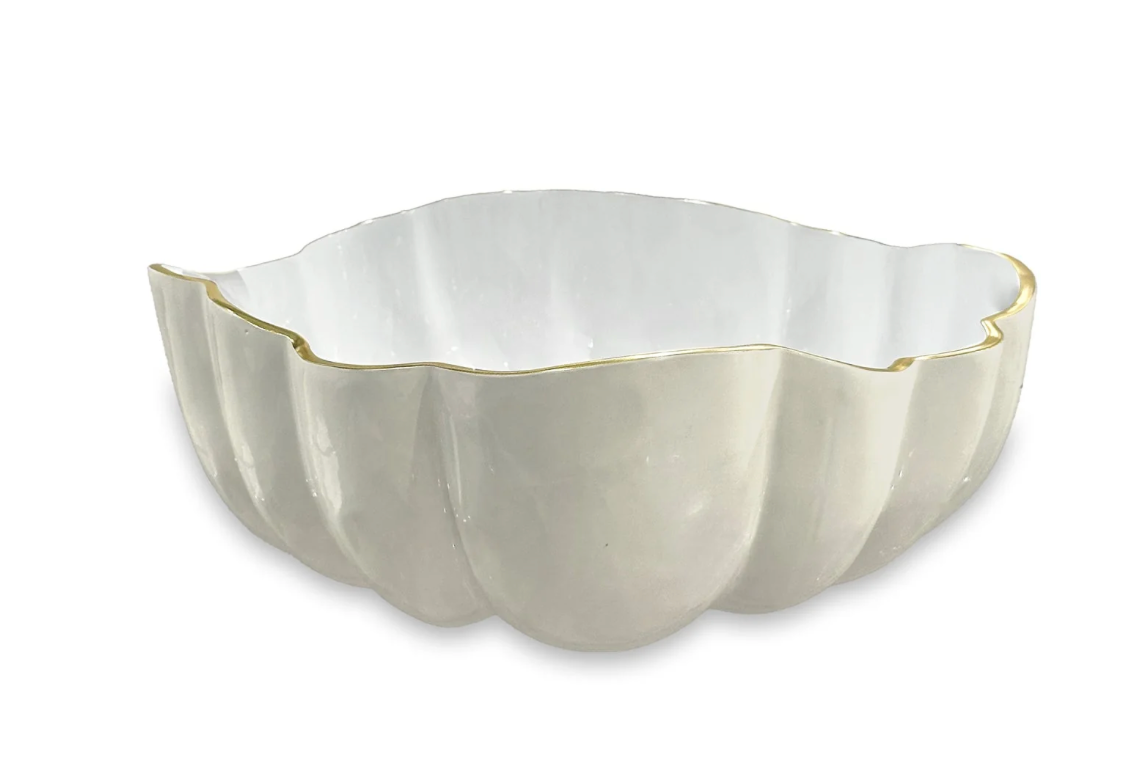 Delightfully unpredictable, the ENCANTO Rita Medium Bowl (Cream and White) pairs a striking two-toned enamel with touches of gold. Cream, a versatile neutral associated with luxury and elegance, brings a calm sophistication to the bold silhouette.