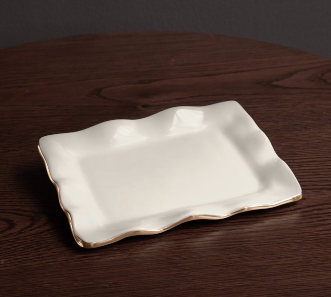 Description: A delightfully decorative tray in our bestselling color! Beatriz Ball continues to innovate and add new finishes and techniques to her handmade offerings with the multicolored ENCANTO Collection--incorporating vibrant enameled colors and gold-tone details. Your table will be the canvas, and your paint palette pieces of brilliant colors! Flirty curves, trending color and signature Vento styling make this piece a standout. Notable for its compact size, elegant shape, and brilliant periwinkle finish rimmed in gold, the ENCANTO Vento Small Rectangular Tray (Cream) is an awesome design that is as handy as it is decorative. Made for decorative use, the piece is great on the desk, vanity or bedside table. Perfect for anyone who loves to decorate. Beatriz Ball’s intensely handmade products use eco-friendly and sustainable materials and are crafted by artisans who trace a heritage of metalworking for generations. Made of a top quality, easy-care, aluminum alloy with an enamel finish. This item is for decorative purposes only and is not food safe. Dishwasher safe.